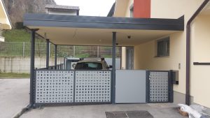 - Prihranek prostora – vrata drsijo ob ograji